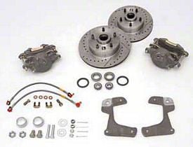 Are you ready for a huge improvement over original, unpredictable four-wheel drum brakes? If you are, then our front disc kit at the spindle with drilled and sweep slotted rotors is for you. Just bolt-on with our easy-to-follow instructions, add your own lines and master cylinder system, add fluid and go.