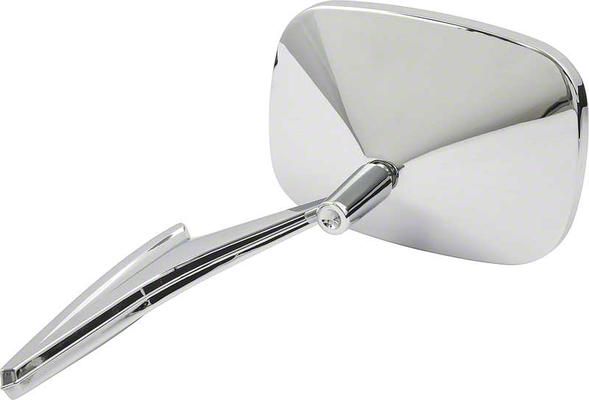 Original style reproduction of the outer door mirror for use with various 1968-72 GM models. Each mirror features the correct style ribbed base with "dimple" at the top of the base near the mirror head. Each mirror is manufactured in zinc die-cast material, chrome plated, and polished to perfection. Included with each mirror is the door-to-mirror mounting bracket, molded gasket, and retaining installation hardware.