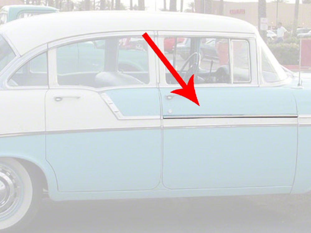 Eckler's no longer carries the Front Door Molding, Left Lower Or Right Upper, For 4-Door Sedan Or Wagon, Show Quality (1956 Chevy Bel Air).