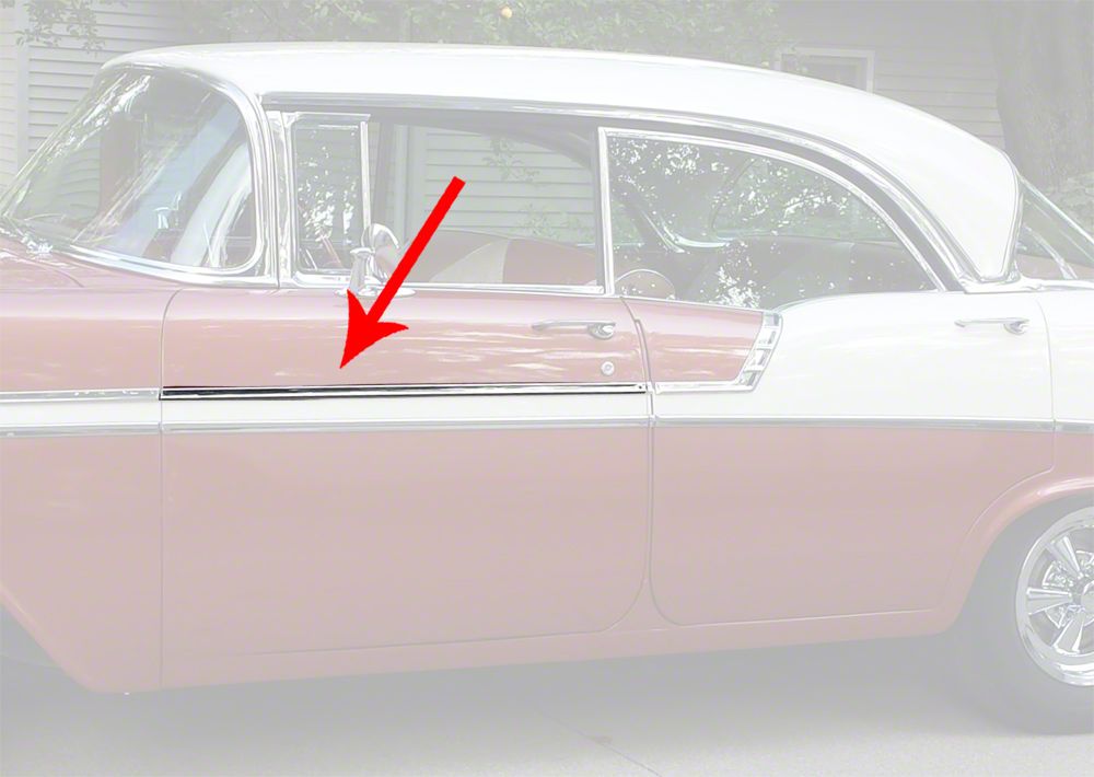 Front Door Molding, Left Upper Or Right Lower, For 4-Door Hardtop, Show Quality (1956 Chevy Bel Air)