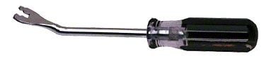 This tool makes access to the door glass easier. Place the tool under the edge of the door panel, insert tool under the fastener as far as possible, and then simply pry up. Rugged tool with a large comfortable handle. Care must be used during the removal to not dimple the exposed metal of the door.