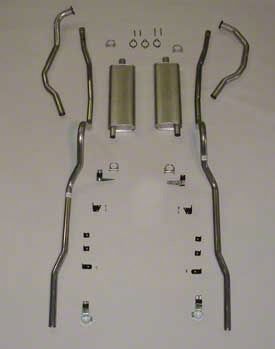 Complete Dual Exhaust System. The 1956 Chevrolet Full Size 8 Cyl. Dual Exhaust System is designed to deliver enhanced exhaust flow and improved engine performance. It is engineered specifically for dual exhaust applications, providing a balanced and efficient path for exhaust gases while ensuring a classic look and sound for your vehicle.