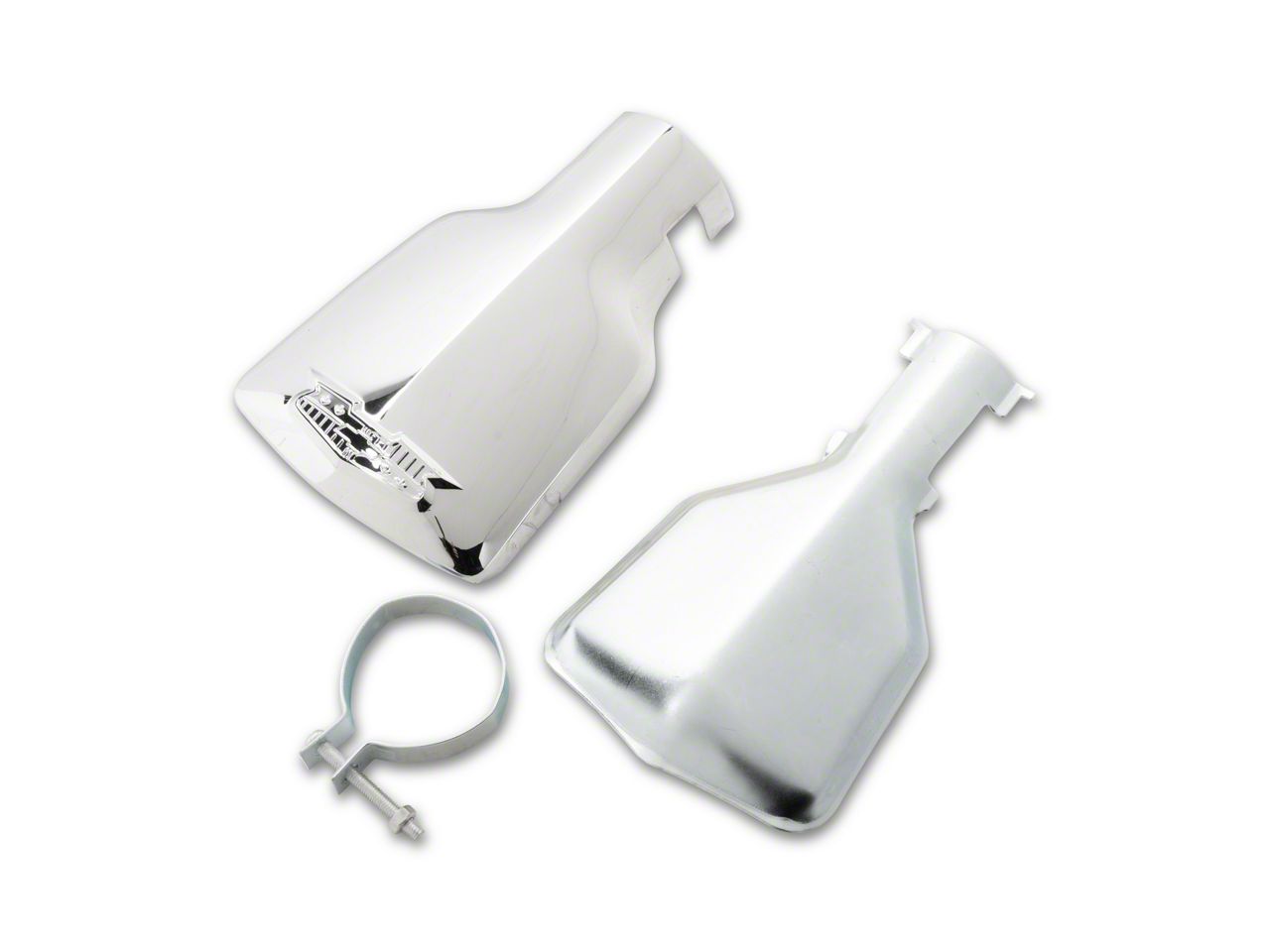 This Chevy chrome exhaust extension was a dealer installed or over the counter accessory designed to dress up single exhaust cars. It may, however, also be installed on dual exhaust cars if you wish. This extension features highly polished chrome and the bold Chevrolet crest with bowtie. It is easy to install on your classic Chevy and comes complete with hardware and inner heat shield. This Chevy chrome exhaust extension is a great way to dress up that plain steel tailpipe!