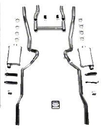 Match this high performance exhaust system to one of the two Classic Chevy International special made headers P/N 24-55 or 24-55c. This system is a direct bolt on and does not require any welding or cutting. This system comes with Turbo mufflers with Aluminized pipes. Complete with clamps and hangers.