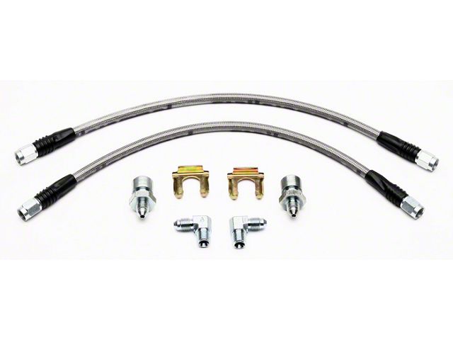 Eckler’s stainless steel braided Flexline Kits are manufactured to high quality standards and are available in various sizes, styles and lengths. These premium grade flexline kits have been designed for application kits as specified above. They are available as an optional item when ordering your disc brake kits and include all the required fittings. Eckler's Classic Chevy highly recommends using these top quality flexlines as a necessary replacement for the OE rubber hoses.