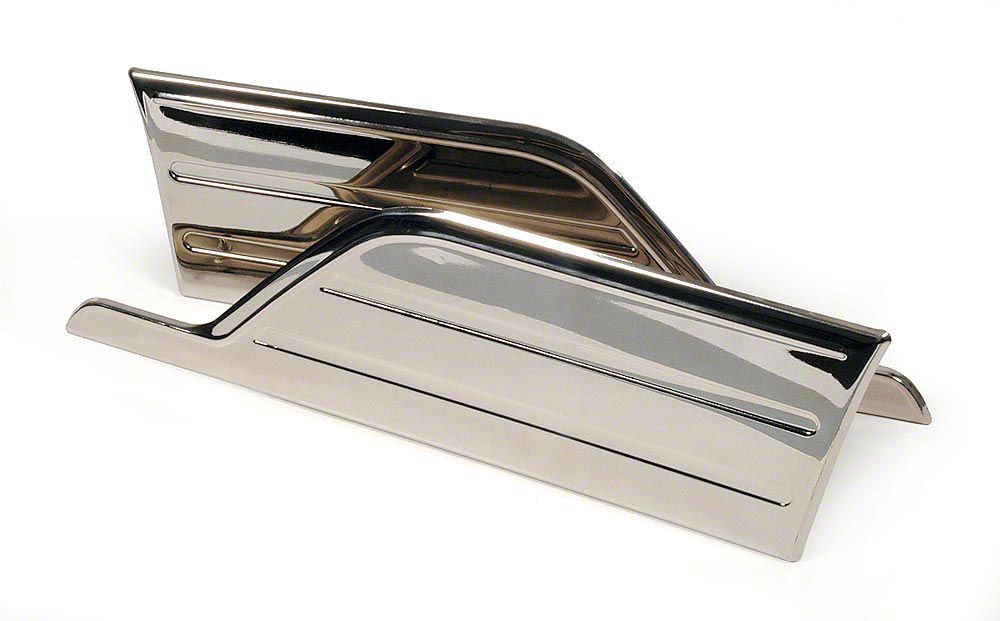 Gravel Shields were a very popular accessory for your 1951 or 1952 Chevrolet Fleetline or Styleline back when it was new. Gravel shields protected the bottom of the front fender from getting dented and chipped paint from road debris because many of the roads were dirt and gravel back then. Eckler's Early Chevy has a new replacement pair of gravel shields that duplicate the originals exactly now that your early Chevy is a show piece. Trust Ecklers Early Chevy for all your Fleetline or Styleline parts needs always at the best possible price.