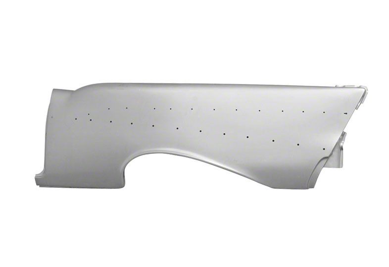 This is a left hand 1957 full factory quarter panel for the 2 door hardtop and convertible. There's nothing flimsy about these heavy gauge sheet metal quarter panels from CARS Inc. They have the pre-drilled holes for your Bel Air trim assembly. The panel includes a partial door opening profile and outer rocker flange. The quarter panel can be modified to fit the 2 door sedan and wagon.