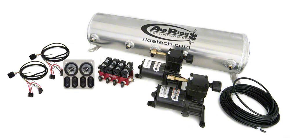 Eckler's and Ridetech are proud to bring you the best in compression systems for your 1958 1959 1960 1961 1962 1963 1964 Full Size Chevy! The RidePRO® manual control 4 way compressor systems ? for the budget minded builder. The control panel has [2] dual needle air pressure gauges and 4 switches that activate the RidePro® airvalves. This system can be upgraded to a full RidePro Digital system by adding the Digital contoller package and/or level sensors at a later date.