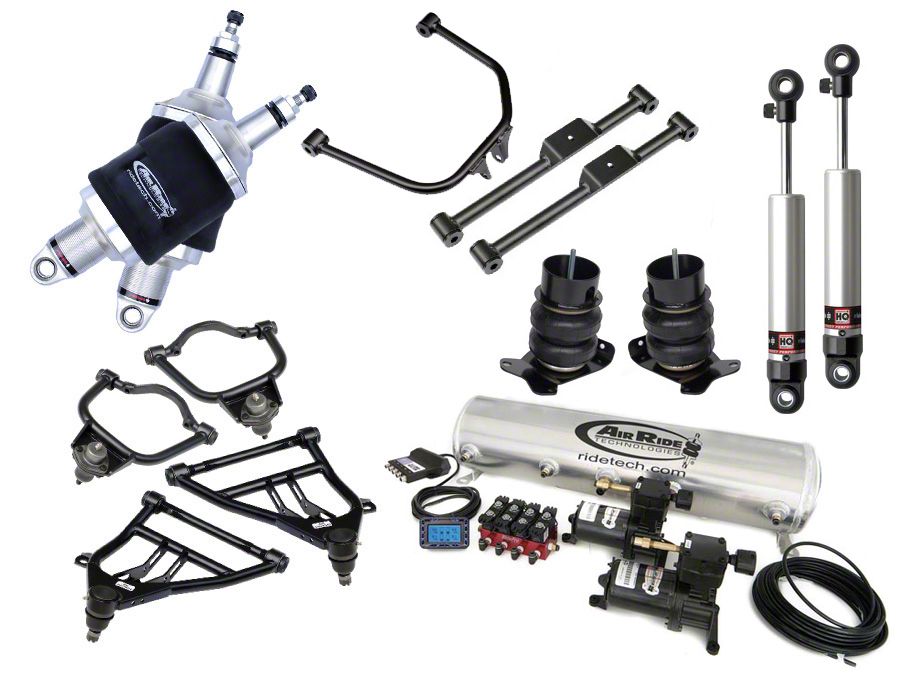 Eckler's and Ridetech are proud to bring you the full air suspension kit for your 1959 1960 1961 1962 1963 1964 Full Size Chevy! Everyone grew up with an old Impala in their family. You also remember the soft, wallowy ride that came with it! Of all the vehicles that we have developed air suspension components for, the early Impalas have shown the most dramatic improvement in both ride quality AND handling performance. The LEVEL 2 system provides more tuning with the addition of a STRONGARM™ front kit and the enhanced RidePro™ control system. The front CoolRide® system is a simple bolt-on install that comes with our STRONGARM™ tubular control arms. The rear STRONGARM™ system adds more precise control of the rear suspension to provide a better ride and increase