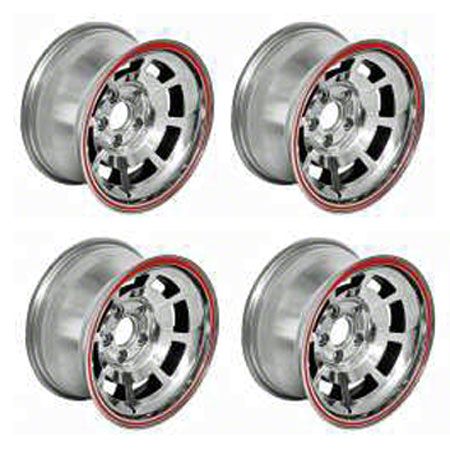 A Corvette pace car style aluminum replacement wheel set may be just the extra style your Chevy truck needs. The wheels on your classic truck set the style for the rest of your car to follow. These Corvette-style wheels are constructed of aluminum and are reproductions of the 1978 Pace Car Corvette wheels. When you are in the market for some new rims or wheels for your truck, Ecklers has you covered. Available at Eckler's Classic Chevy Trucks today! Note: May rub the front inner or outer fender when turning.