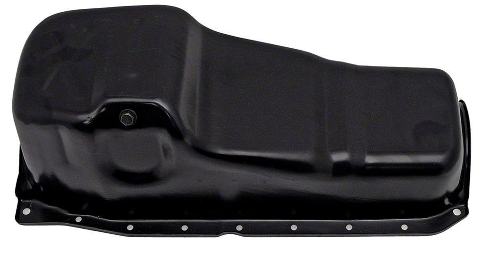 Construction and Appearance. Constructed from high-quality steel, this oil pan features a durable black coated finish that resists corrosion over time. The design includes a baffled interior to minimize oil movement and enhance engine reliability.
