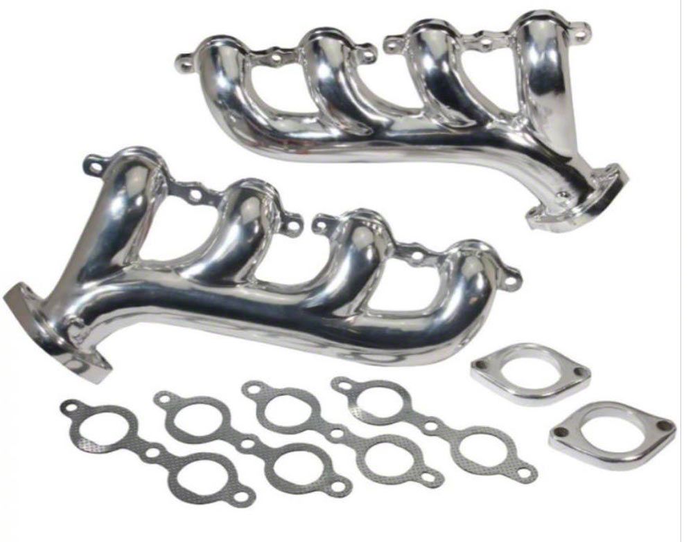 CPP's new performance exhaust cast iron manifolds were designed with small engine compartments in mind. These slick-looking matched manifolds bolt on cleanly, providing plenty of space for plugs and plug wires. Features larger ports than old style manifolds for better flow and increased horsepower. center dump configuration makes any size exhaust system an easy installation. Includes gaskets, and all hardware.
