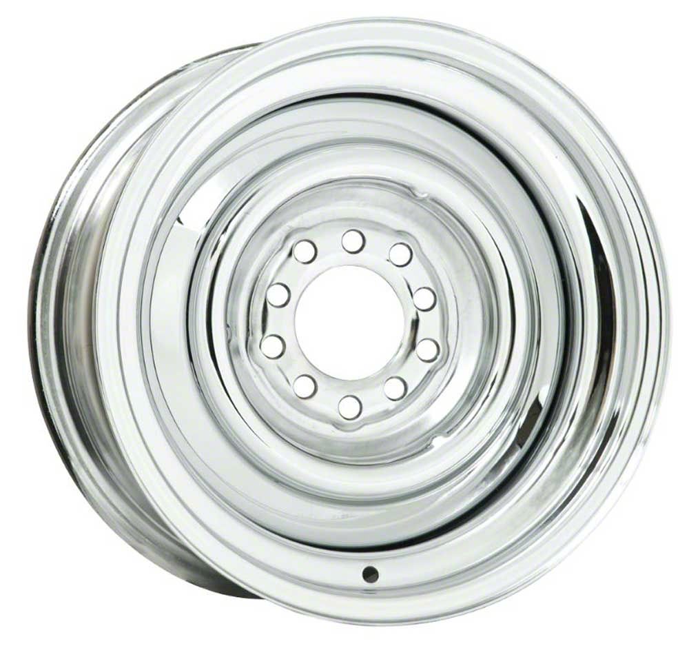 The 10 Series Smoothie by Wheel Vintiques is one the most timeless and popular styles Eckler's Trucks offers. Sizes range from 15x6 to 18x7 and feature the standard truck 5x5 (127mm) bolt pattern. Show quality chome and a variety of backspaces to fit your needs makes this wheel a perfect choice for your Chevy or GMC Truck. Wheel only, caps not included. Made in the USA!