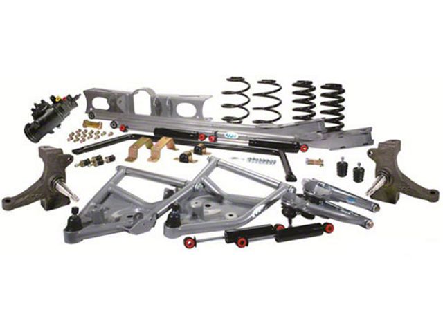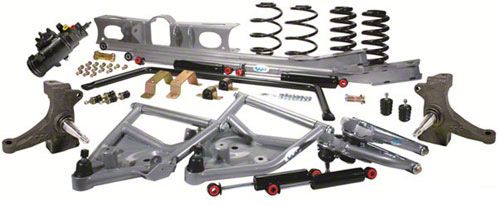 Totally Tubularâ„¢ Control arms in the front and the rear, front and rear coil springs, front performance sway bar, front and rear Black Magicâ„¢ performance tuned shocks, a quick ratio power steering box, and a drop center cross member that is designed for lowered applications for mounting the trailing arms are part of this kit.