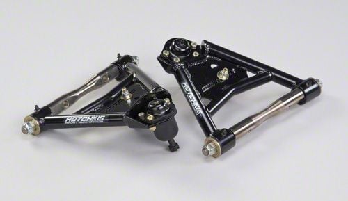 Install the Hotchkis Tubular Upper A-Arms on your 63-72 C-10 Pickup and gain vastly increased handling and control. These TIG welded, geometry corrected, bolt-on arms offer premium quality construction and improve camber gain dramatically increasing handling performance. Added caster improves high speed stability, while the smooth operating Delrin bushings in the 4130 billet cross shaft allow the arms to move through their travel easily. Finished in gloss black powder coat, the arms are ready to install and are complete with premium ball joints and integrated droop stops. Easy installation with no vehicle modifications required. For even greater handling improvements combine with the Hotchkis Sport Suspension Tubular Lower A-Arms. PROUDLY MADE IN THE USA.