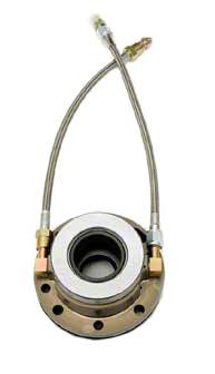 Hydraulic Throwout Bearing. The Hydraulic Clutch Bearing with Remote Master Cylinder, designed for T5 transmissions from 1955-1972, replaces the original bearing retainer with a durable, high-performance hydraulic throwout bearing. It converts hydraulic pressure into mechanical movement to disengage the clutch, simplifying transmission swaps and clutch linkage fabrication. This bearing ensures reliable clutch operation for improved street or strip vehicle performance.