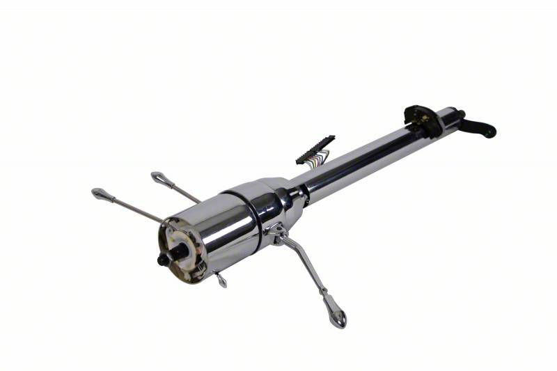 This Chevy ididit chrome tilt steering column will completely change the way you feel about driving and getting in and out of your car. This column shift column is manufactured by ididit; the best name in the steering column business. It is finished in paintable steel and is designed to shift all GM automatic transmissions except Powerglide. The shaft at the bottom is 3/4"-36 spline which requires coupler