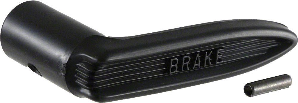 This parking brake handle is an exact reproduction of the original. It has a metal sleeve and set screw to fasten to your parking brake rod. Now here is the difference between TrimParts handle and the "other guys". TrimParts has a steel insert welded to the sleeve that extends through the handle. This handle will not twist off the sleeve.