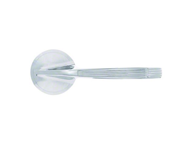 Ecklers Classic Chevy new interior door handles provide that fresh look to make any 1955, 1956 or 1957 Chevrolet interior restoration pop. Typically pitted or worn from years of use, your Tri-Five Chevys inside door handles tends to fade and wear to a less then showroom fresh appearance. Reusing an old unit may bring your Chevys interior restoration to appear incomplete. Original used 1955-57 Chevy door handles sometimes contain little stress fractures form years of fatigue cause the cast unit to snap. Others maybe oblong at the attaching points resulting in a loose sloppy feel. Ecklers Classic Chevy understands that a quality restoration begins with a quality part. Our 1955, 1956, 1957 Chevy interior door handles are casted usi