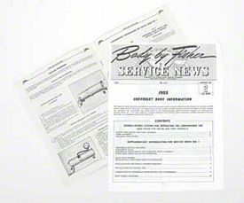 This reprint of the original Fisher Body Service News includes helpful diagrams and information not included in the Shop or Assembly Manuals. It is especially useful when trying to disassemble/assemble doors, glass, convertible tops & unique station wagon items. It also includes a complete convertible top installation with diagrams & photos. This manual is useful for all 3 years 1955-57, 88 pages, 8-1/2" x 11", saddle stitched.