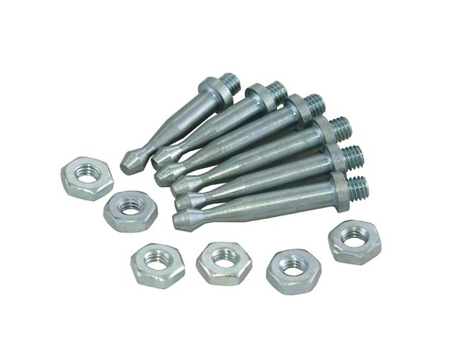 These moulding pins are assembled into the 1957 top of the fin mouldings. The moulding pin assembly is then inserted into the fin moulding clips mounted in the top of the Eckler's Moulding Pin Set will work on any 1957 classic Chevy 210 or 150 model. Set contains 6 pins, enough pins for both top of the fin mouldings.
