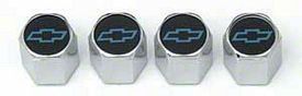 Non-Locking Stem Caps, Chrome, With Blue Bowtie Logos (55-57 Chevy Bel Air; 55-57 Chevy 150; 55-57 Chevy 210; 55-57 Chevy Nomad)