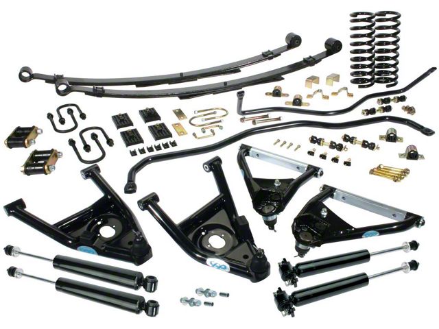 CPP's new Pro-Touring Kits are the most complete packages on the market and offer the ultimate in performance upgrades to your car or truck for an affordable price. Our kits come in 4 different stages, from suspension only (Stage I & II) to full kits (Stage III & IV) including front and rear brake packages. Our kits are made in the USA with the quality you have come to expect from Classic Performance Products, Inc. All our PTK kits include front and rear Totally Tubular™ upper and lower control arms, front and rear Pro-Touring sway bars with an optional billet aluminum mount upgrade, lowered front and rear coil springs with nitrogen gas shocks in the PTK1 or the dual-adjustable coil over package with rear dual-adjustable shocks (PTK2, PTK3, PTK4), lowered rear leaf springs (for leaf spring applications). Add CPP's chrome master cylinder/ adjustable stop-block combo along with our front and rear 11" or 13" Big Brake disc brake kits, and you have a "tried and true" Pro-Touring package in the PTK3 (Stage III) and PTK4 (Stage IV) kits. Check out the PTK+ section for more steering, brakes and suspension upgrades to get the most performance out of these packages!