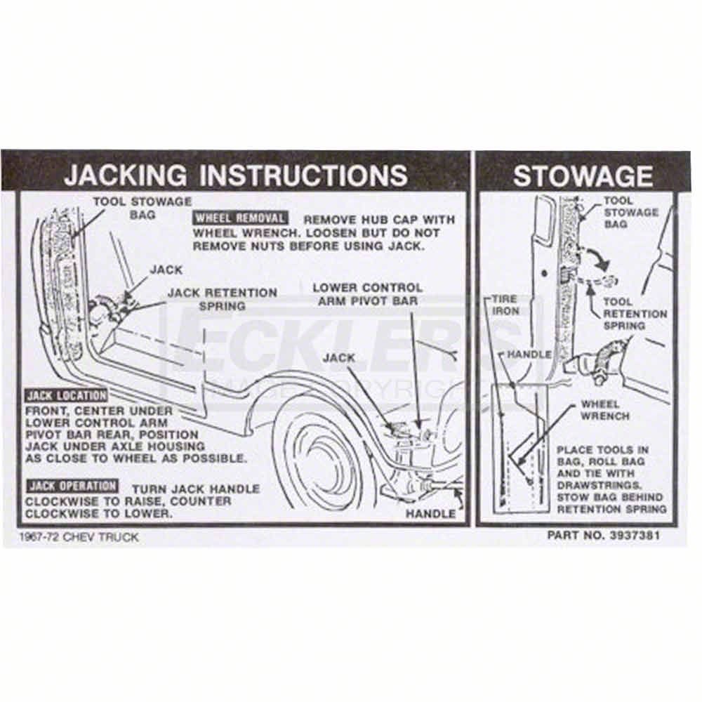 Decals offer a finishing touch for your original or restored GMC or Chevy Truck. Eckler's Classic Chevy & GMC Truck has all the decals you need like jacking instructions & stowage or a posi-traction decals to make your truck shine at a local show. Trust Ecklers to bring you only the best Chevy or GMC truck parts at the best possible price.