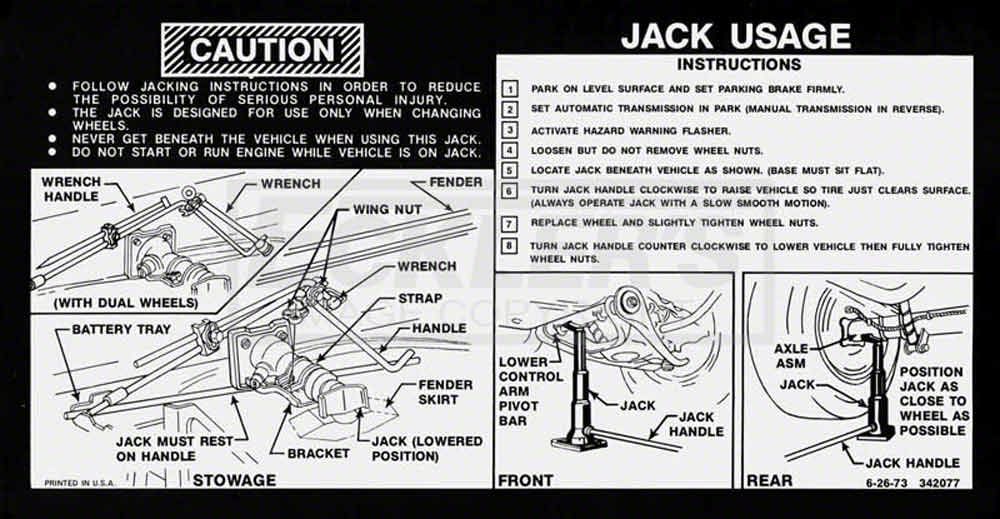 Eckler's no longer carries the Chevy Or GMC Jacking Instructions Decal, With Standard Style Jack, 1974-1977.
