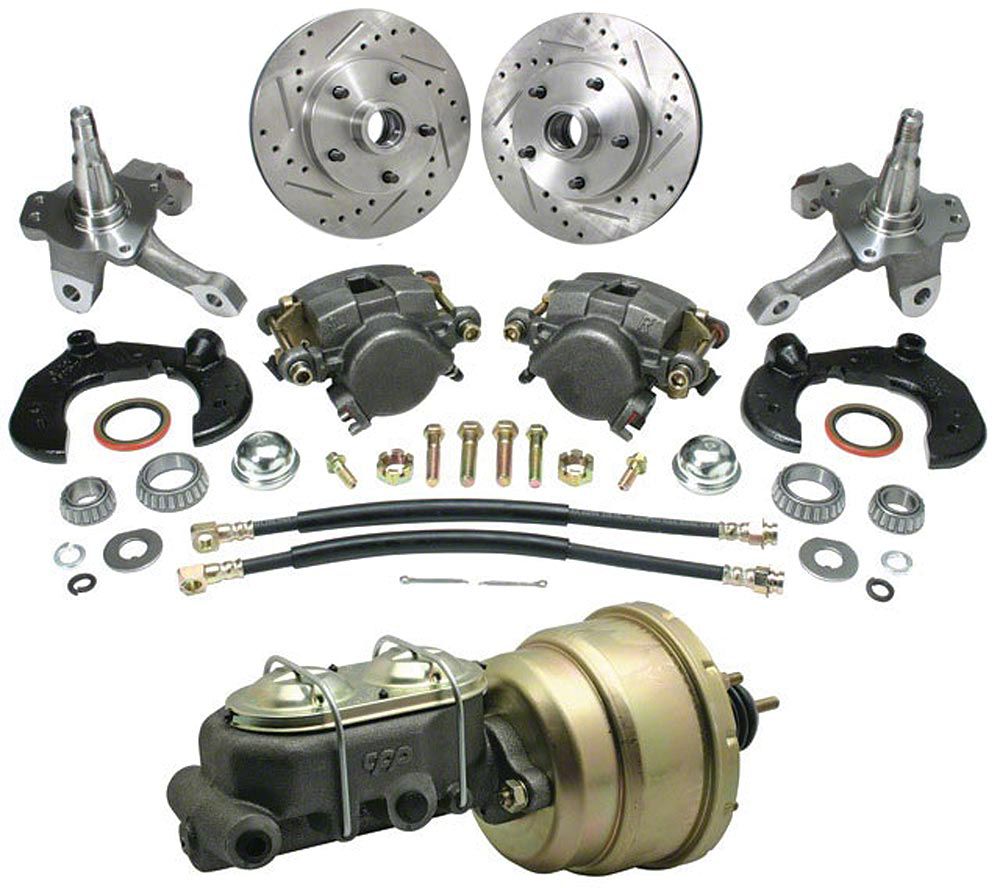 • Includes Stock Ford Spindles, Loaded Single-Piston Calipers, 5 x 4.5" Bolt Pattern 11" Vented, Drilled And Slotted Rotors, Dual Diaphragm Booster & Dual Master Cylinder