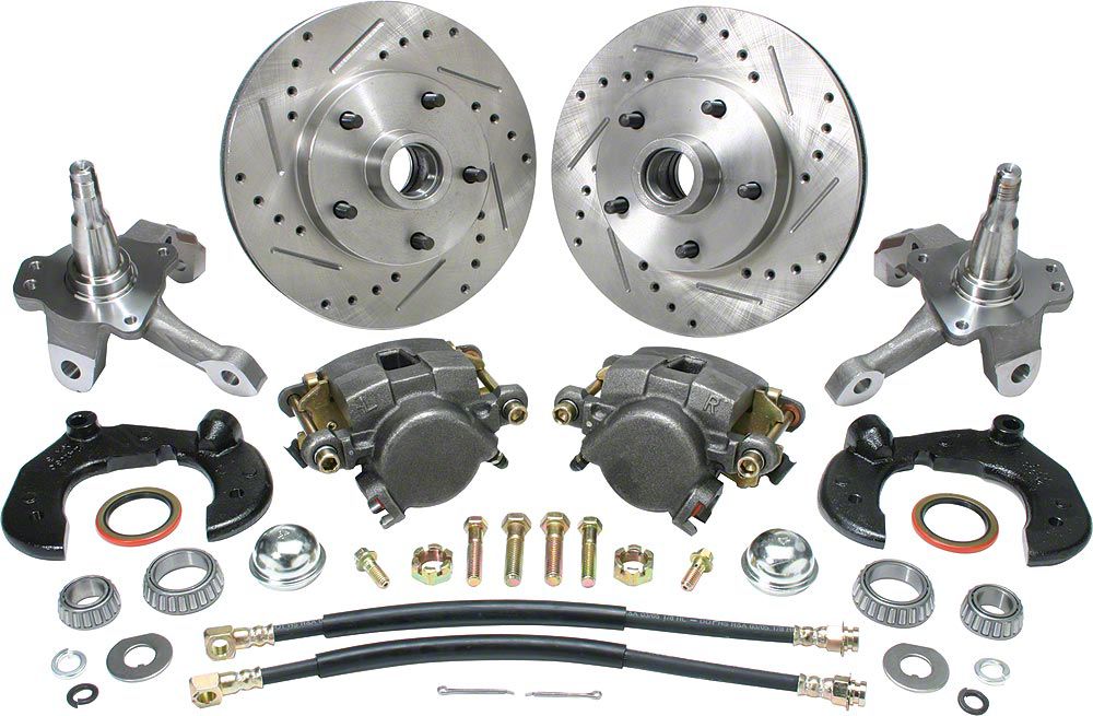Power Front Disc Brake Kit, At The Wheel, With Ford Bolt Pattern, Drilled & Slotted Rotors, For Mustang II (1949-1952 Fleetline; 1949-1952 Styleline Deluxe)