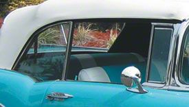 Chevy Quarter Glass, Installed In Frame, Clear, Convertible, Right, 1955-1957 (Bel Air Convertible)