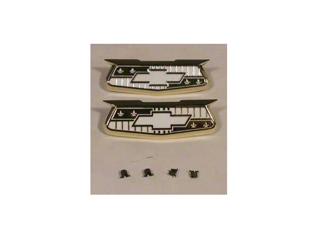 If you are looking for 1955, 1956 or 1957 Chevrolet gold quarter panel crest emblems for your Bel Air, 150, 210, Nomad or wagon, look no further because Eckler's Classic Chevy has the best quality you can buy! These superior quality emblems fasten to the quarter inserts on the 1957 Chevy and directly to the quarter panels on the 1955 & 1956. These quarter panel crests are exact duplicates of the original right down to that super gold shine! Trust Ecklers Classic Chevy for all your Tri-Five parts needs always at the best possible price.