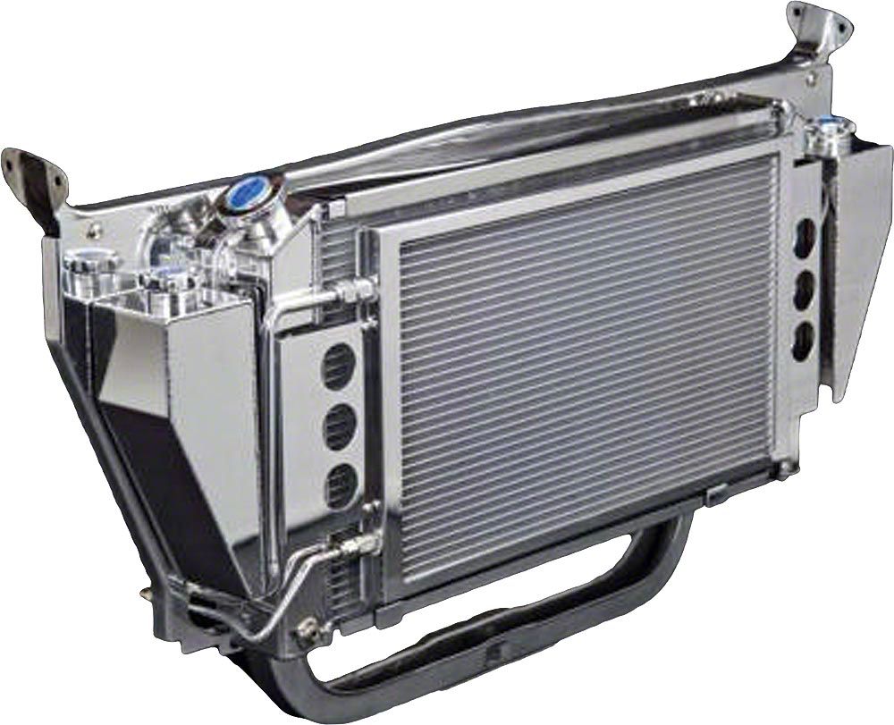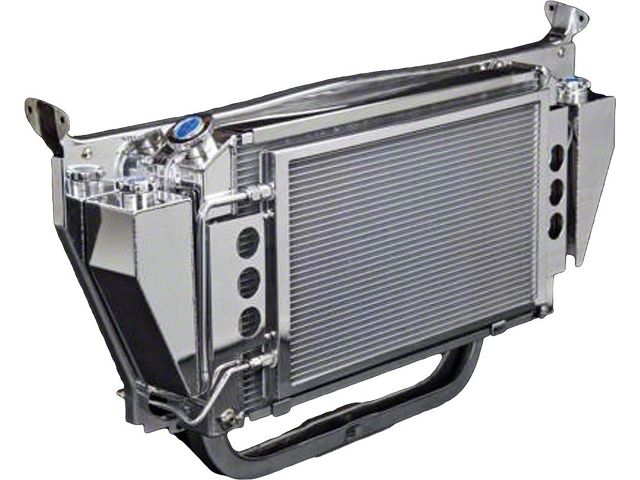 This Chevy Be Cool cross-flow radiator kit will solve all of your cooling dilemmas. This is not just an every day radiator, it is a complete cooling module that includes a highly polished aluminum core support, polished side panels, recovery and reservoir tanks, the highly polished cross-flow radiator, chrome dual 11" electric fans with billet motor covers, stainless steel fan brackets, the fan control harness, radia