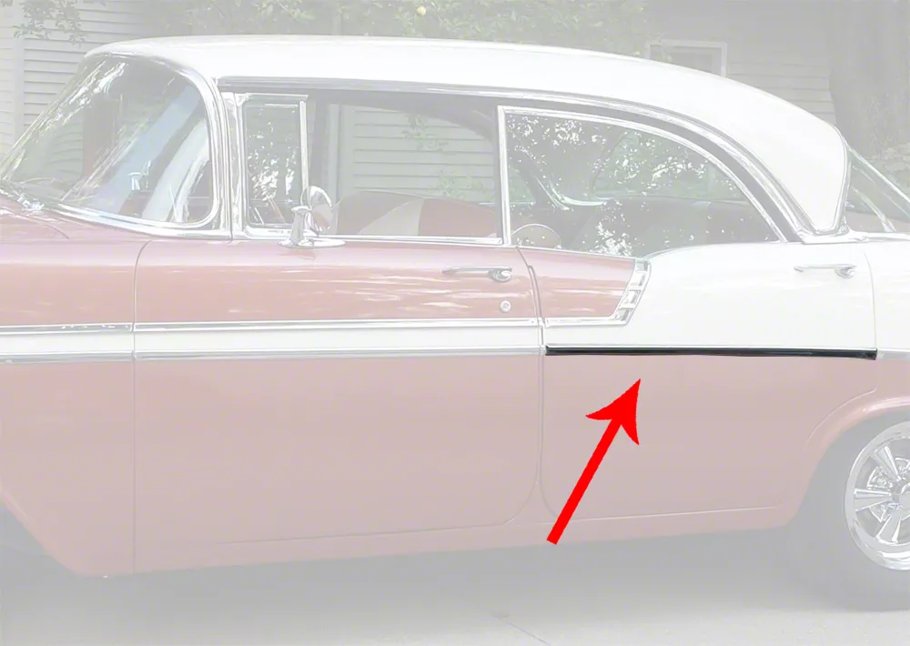 Rear Door Molding, Left, For 4-Door Hardtop, Show Quality (1956 Chevy Bel Air)