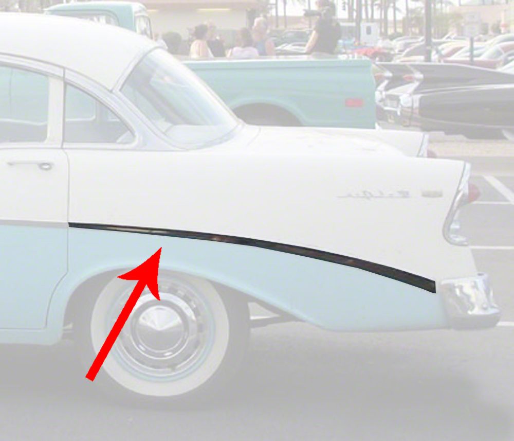 Rear Quarter Panel Molding, Left, For 4-Door Sedan & Wagon, Show Quality (1956 Chevy Bel Air)