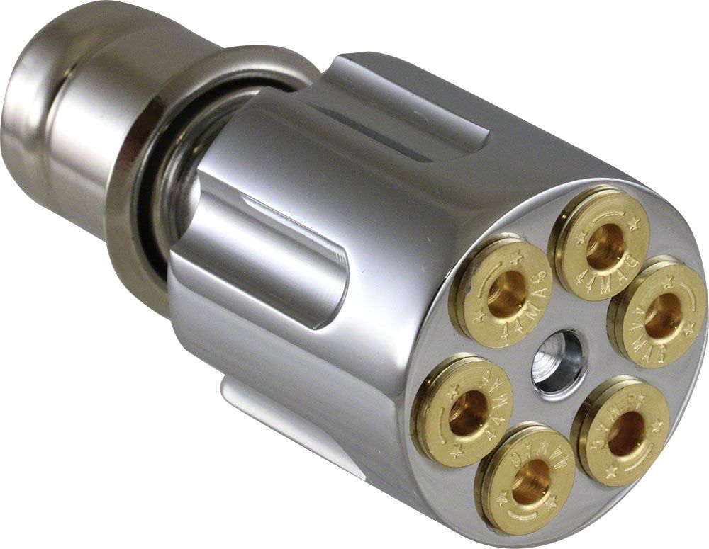Go ahead...make our day and yours too with this cigarette lighter and knob that looks just like a revolver cylinder! This heavy duty lighter knob is loaded with .44 Magnum "rounds" and ready to go in your Chevrolet from Eckler's Classic Chevy. Bright chrome plating over billet aluminum insure long service life in your 1955, 1956 or 1957 Chevy 150, 210, Bel Air, Nomad or Wagon. Ecklers Classic Chevy brings you the best parts for your Chevrolet always at the best possible price.