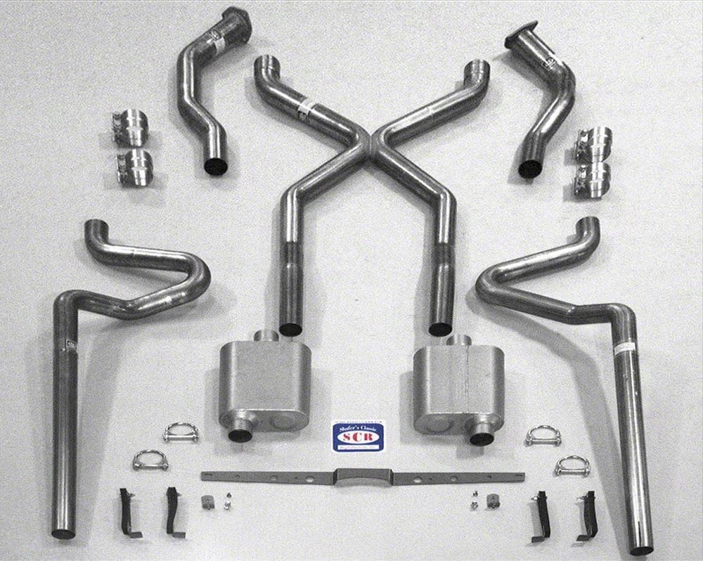 SCR X Quickflow Performance Dual 2-1/2 Exhaust System, For Use With 3/4 Length Shorty Header & Spring Pocket Kit, Stainless Steel (55-57 Chevy Bel Air; 55-57 Chevy 150; 55-57 Chevy 210)