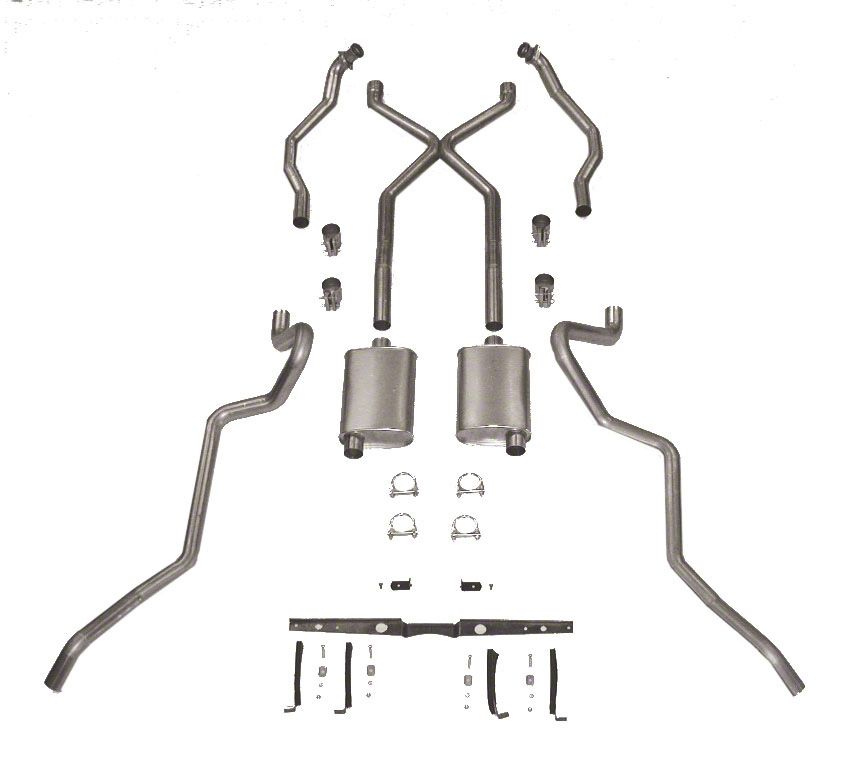 SCR X Turbo Performance Dual 2-1/2 Exhaust System, For Use With 2-1/2 Rams Horn Exhaust Manifolds, Stainless Steel, Small Block (55-57 Chevy Bel Air; 55-57 Chevy 150; 55-57 Chevy 210)