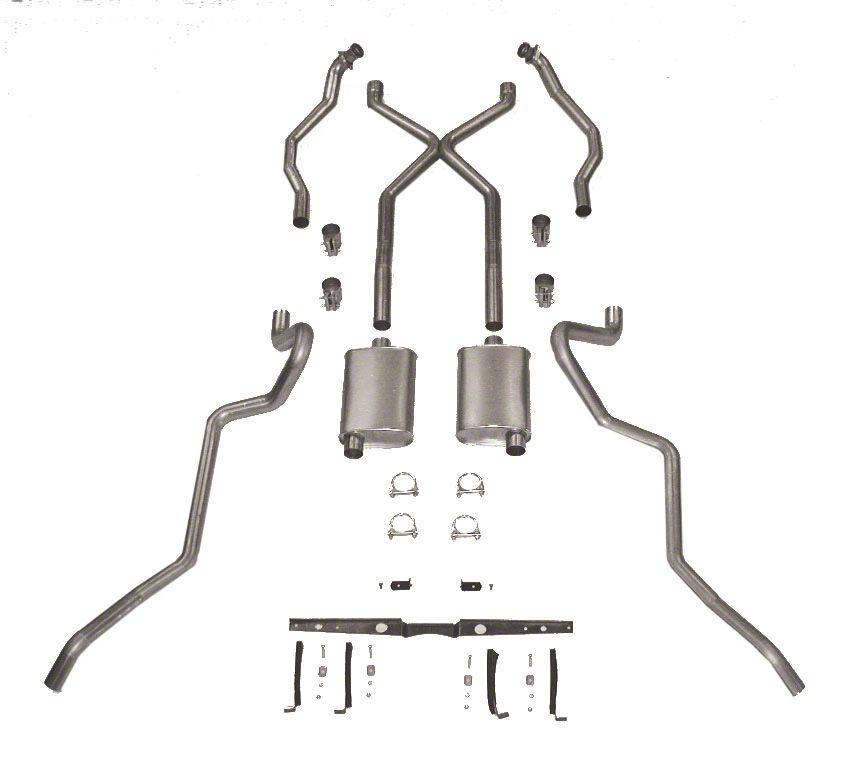 SCR X Turbo Performance Dual Exhaust System, 2-1/2 For Use With 2 Rams Horn Exhaust Manifolds & Rear Pocket Kit, Small Block Stainless Steel (55-57 Chevy Bel Air; 55-57 Chevy 150; 55-57 Chevy 210)