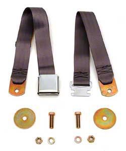 This replacement Chevy seat belt looks similar to the original belts used in the early Classic Chevys. A simple chrome buckle and new black webbing enhances any classic Chevy interior from 1955-1972. Floor mounting hardware is provided for proper and safe installation. Installation of this Chevy seat belt does require minor drilling. Each belt completes one passenger. The front belt is 74" overall length to accommodate from small to large individuals.