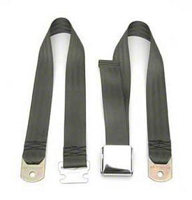 This replacement Chevy seat belt looks similar to the original belts used in the early Classic Chevys. A simple chrome buckle and new black webbing enhances any classic Chevy interior from 1955-1972. Floor mounting hardware is provided for proper and safe installation. Installation of this Chevy seat belt does require minor drilling. Each belt completes one passenger. The front belt is 74" overall length to accommodate from small to large individuals.