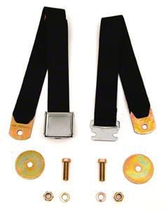 This replacement Chevy seat belt looks similar to the original belts used in the early Classic Chevys. A simple chrome buckle and new black webbing enhances any classic Chevy interior from 1955-1972. Floor mounting hardware is provided for proper and safe installation. Installation of this Chevy seat belt does require minor drilling. Each belt completes one passenger. The rear belt is 60" overall length to accommodate from small to large individuals.