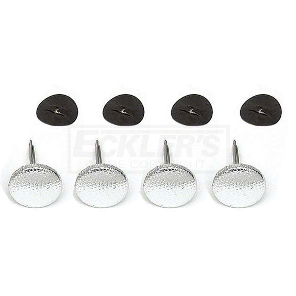 The 1956 Bel Air is a beautiful car without a doubt and a special car needs special restoration parts. The Chevrolet Bel Air has an interior that is different from all other models and these silver seat buttons are one of the main parts that set the interior seat covers apart from other models. Eckler's Classic Chevy has seat buttons in silver with the correct, cross hatch embossing and it comes with the installation backing plate to keep the seat button in the seat and not on the floor. Trust Ecklers Classic Chevy to bring you only the best parts for your Tri-Five Chevy always a the best possible price.