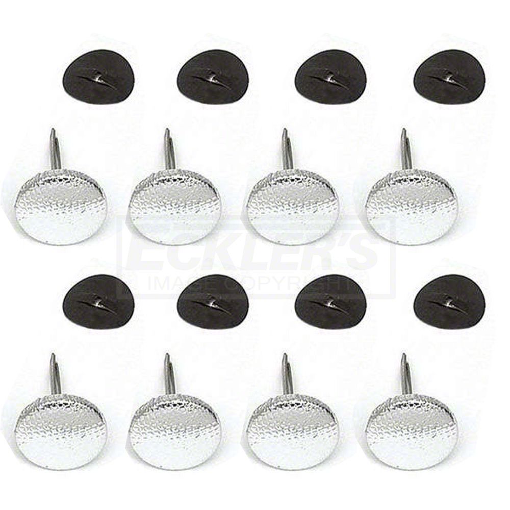 The 1957 Bel Air is a beautiful car without a doubt and a special car needs special restoration parts. The Chevrolet Bel Air has an interior that is different from all other models and these silver seat buttons are one of the main parts that set the interior seat covers apart from other models. Eckler's Classic Chevy has seat buttons in silver with the correct, cross hatch embossing and it comes with the installation backing plate to keep the seat button in the seat and not on the floor. Trust Ecklers Classic Chevy to bring you only the best parts for your Tri-Five Chevy always a the best possible price.