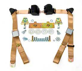 Shoulder Harness, Seat Belt Kit, 3-Point Retractable, Tan (55-57 Chevy Bel Air; 55-57 Chevy 150; 55-57 Chevy 210; 55-57 Chevy Nomad)