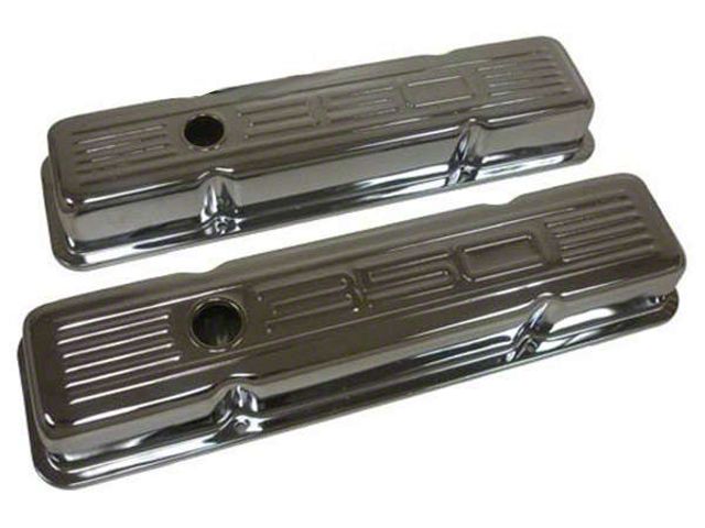 Eckler's Late Grerat Chevy now offers a good quality chrome valve covers at an affordable price for your 1958, 1959, 1960, 1961, 1962, 1963, 1964, 1965, 1966, 1967, 1968, 1969, 1970, 1971, 1972, 1973, 1974, 1975, 1976, 1977, 1978, 1979, 1980, 1981, 1982, 1983, 1984, 1985, 1986 Chevy.Dess up your engine compartment with out breaking the bank. So go ahead and complete the chrome look on your Chevy with this great valve covers with the 350 Logo. Trust Eckler's Late Great Chevy for all your 1958-1986 Chevy restoration and accessory parts needs.