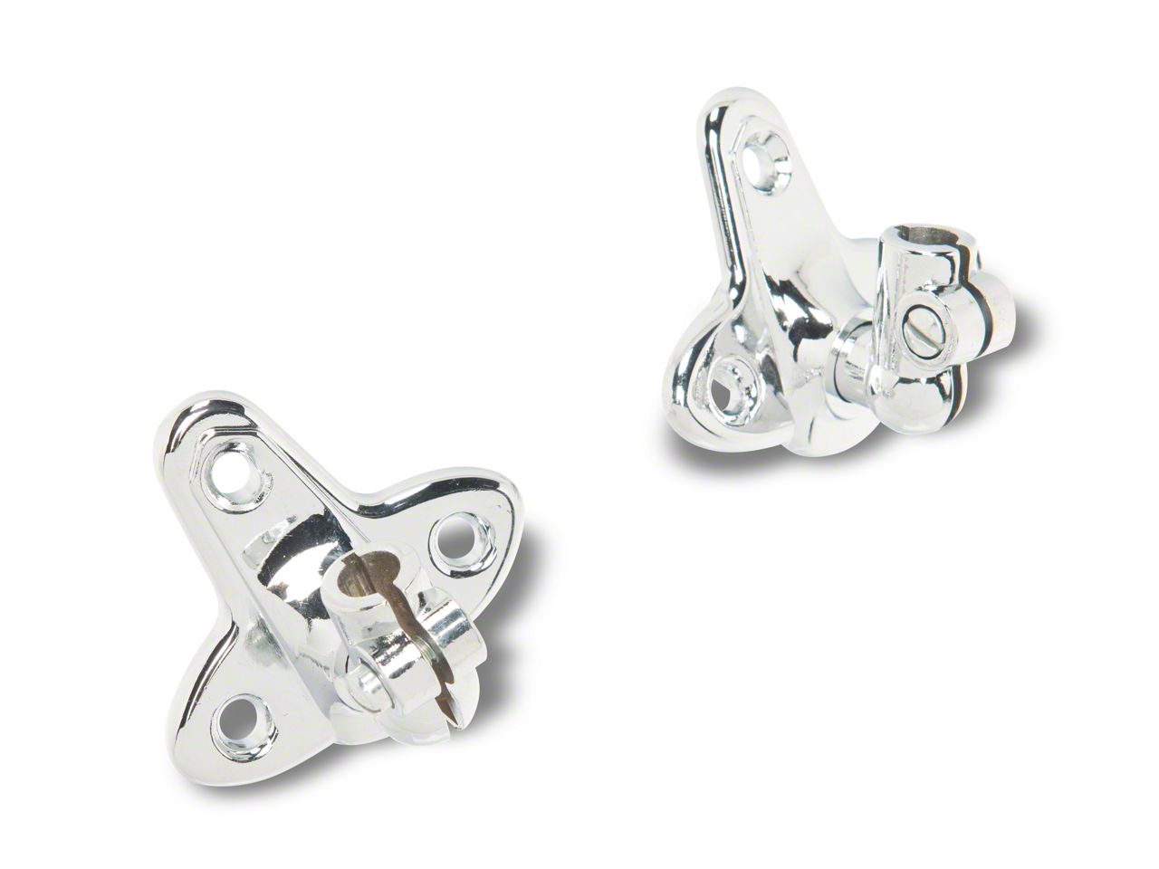 Sun visor brackets will wear out and may break over time and the sunvisors will slowly droop down from the roof of your 1955, 1956 or 1957 Chevy Bel Air, Nomad, 210 or 150, leaving your sunvisor looking bad and not doing its job in protecting your eyes from the impeding sunlight. Eckler's Classic Chevy brings you only the best with our exclusive Eckler's Select Series for the demanding restorer. This highly polished triple chrome plated sunvisor bracket is high pressure die cast as the original, and will fit sedans, coupes, hardtops, and wagons. From racers, show cars, hot rods, and daily drivers, you can trust Eckler's Classic Chevy to bring you only the best Tri-Five parts at the best possible prices for your 1955, 1956, or 1957 Chevrolet!