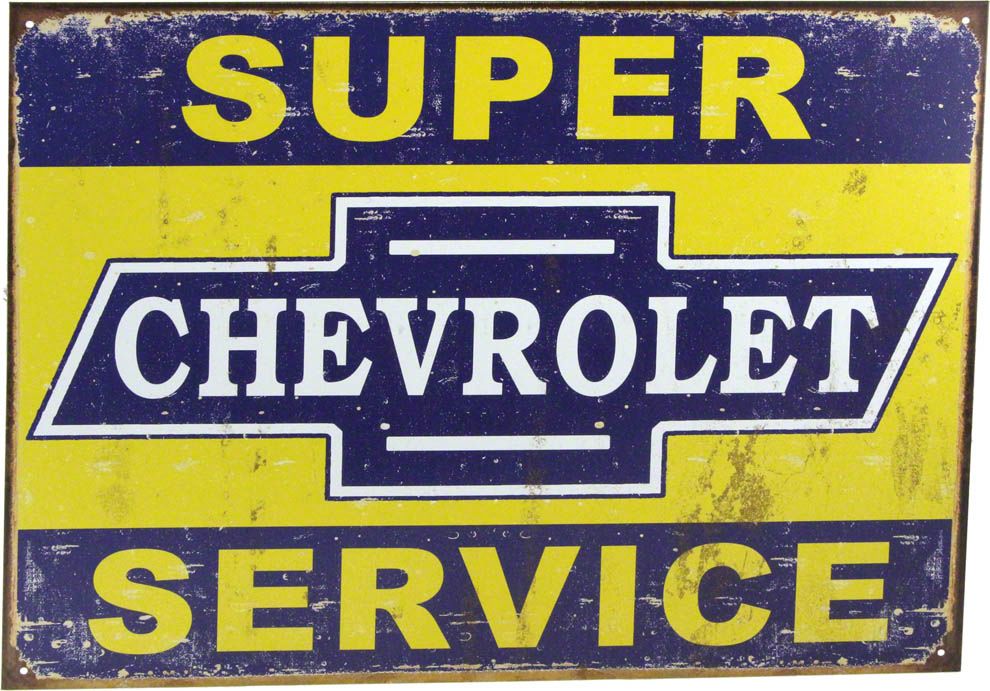 Eckler's no longer carries the Chevy Tin Sign, Super Chevrolet Service, Weathered.