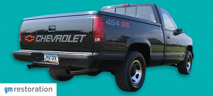 1990 1991 Chevrolet/Chevy 1500 "454 SS" Trucks were the best. Fleetside or Stepside the factory original OEM tailgate endgate name decal proudly displayed your truck's make for the world to see. Get a GM Restoration Parts decal kit manufactured to OEM qua